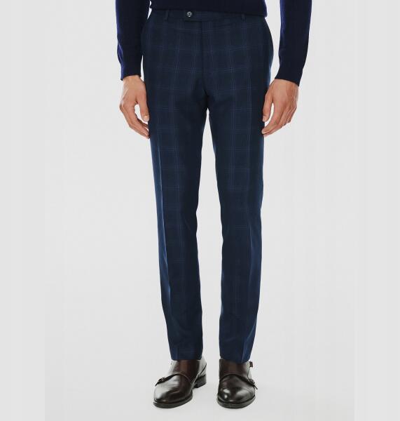 Pako lorente Sötétkék kockás férfi öltönynadrág Pako Lorente 100/176-es méretALLEGRO
